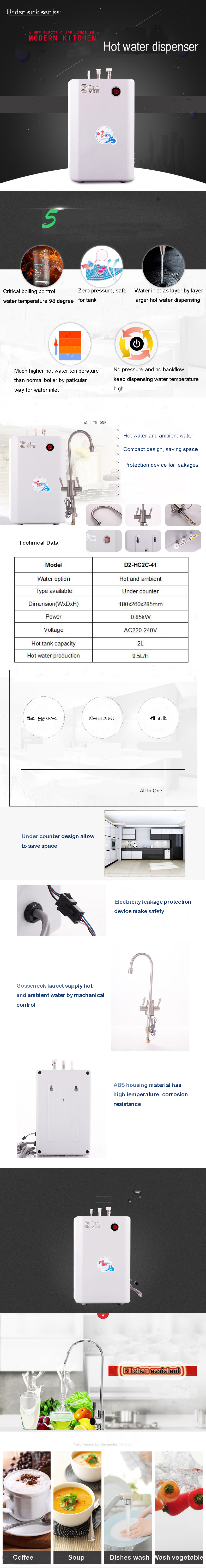 1. Microcomputer three-dimensional water leakage prevention function: Microcomputer real-time monitoring, once the drinking machine itself leaks inside, the system will automatically cut off the water source immediately to prevent flooding hidden dangers. If the water leaking from other pipes around the brewing machine touches the drinking machine, the computer system automatically buzzes the alarm;