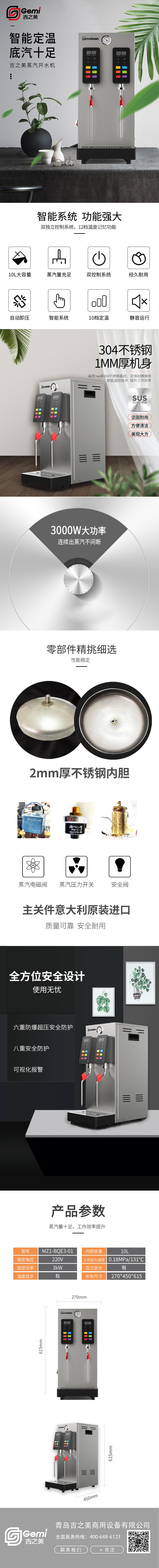 产品型号 MZ1-BQE3-01 额定电压 220V/50HZ 加热功率 3000W 内胆容积 10L 补水方式 电子水位电极 显示方式 LED 控温模式 双6组 温度显示 有 压力显示 有 压力保护 六重保护 排水方式 手动 出气方式 电子双气 温控方式 电子温控 外形尺寸 270*450*615mm 材质 内胆2mm厚/外壳1mm厚304不锈钢 工作压力/温度 0.18MPa / 131℃ *以上特点并非全部机型所有,购买时请参考实机!